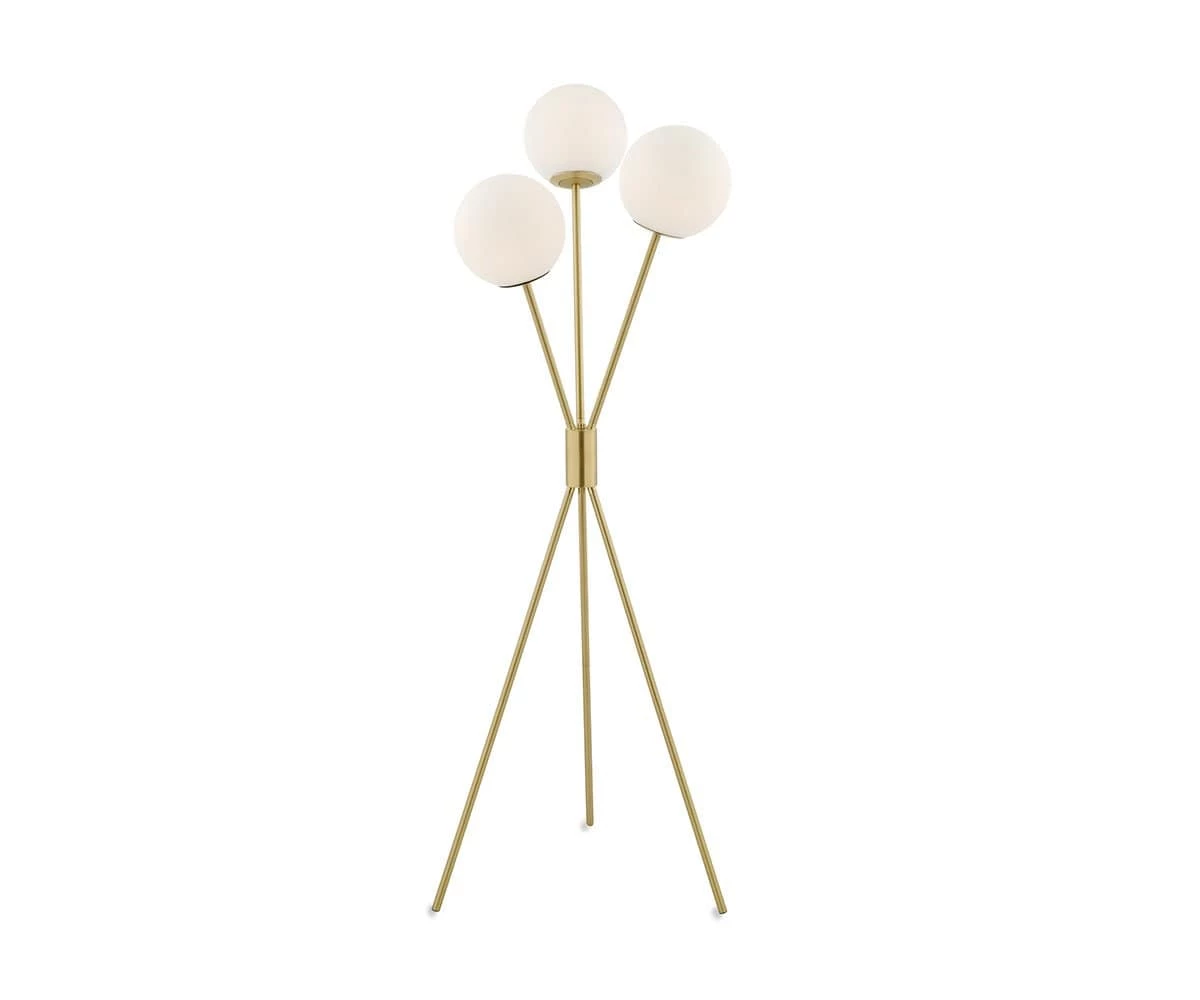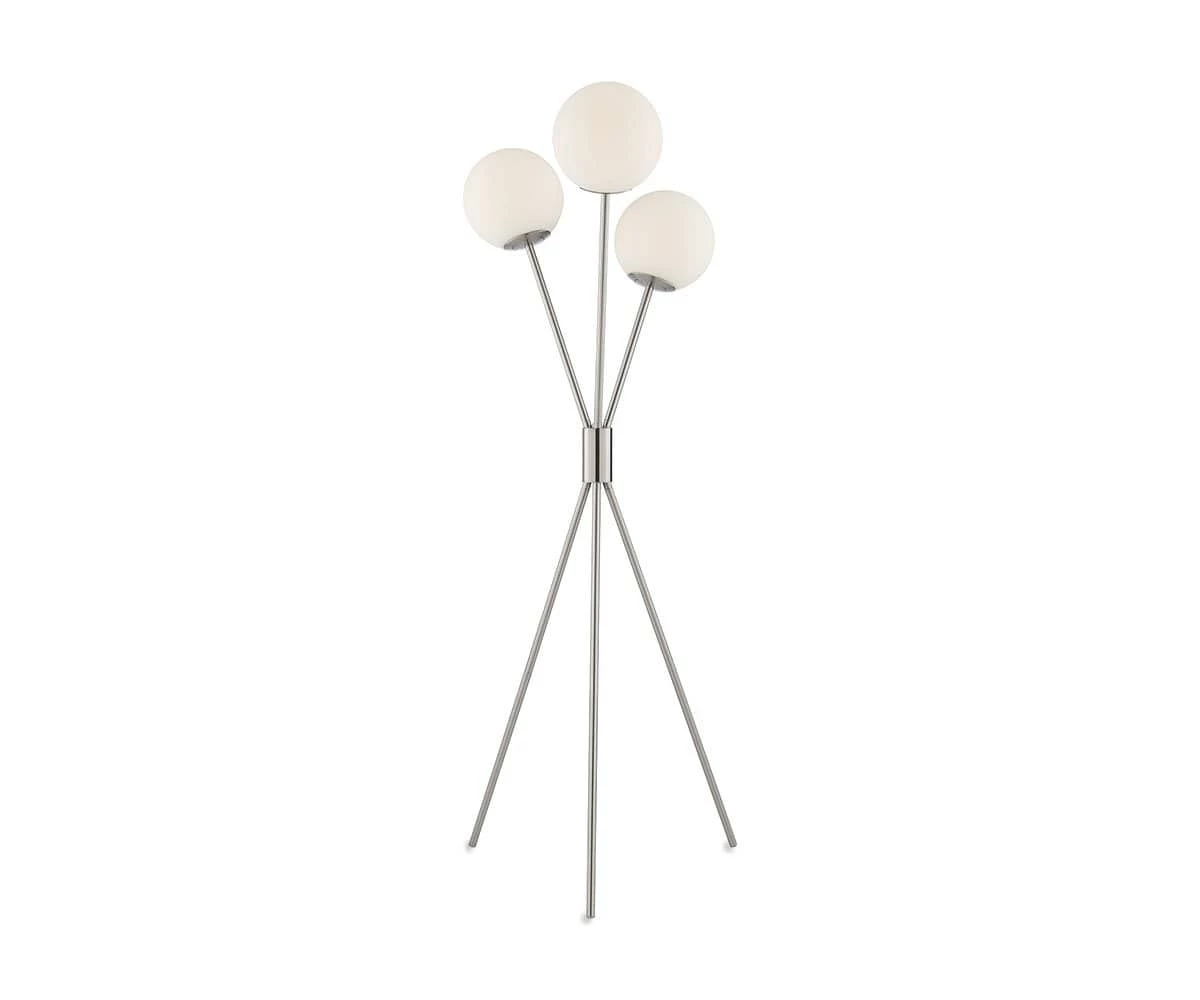 The Evie Floor Lamp features contemporary style with a mid-century twist. This tall, slender lamp creates a statement in any room, and can be used to round out myriad decor styles. Use this lamp to fill empty spaces between a sofa and an accent chair, or place in a home office to serve both as lighting and as an eye-catching focal point. Three round glass shades with a frosted finish allow for soft, bright light, while a trio of brushed nickel poles showcase distinctly streamlined design. This aesthetically pleasing lamp is an easy addition to any space, and helps to layer the lighting in your room for a warm, illuminated ambiance.