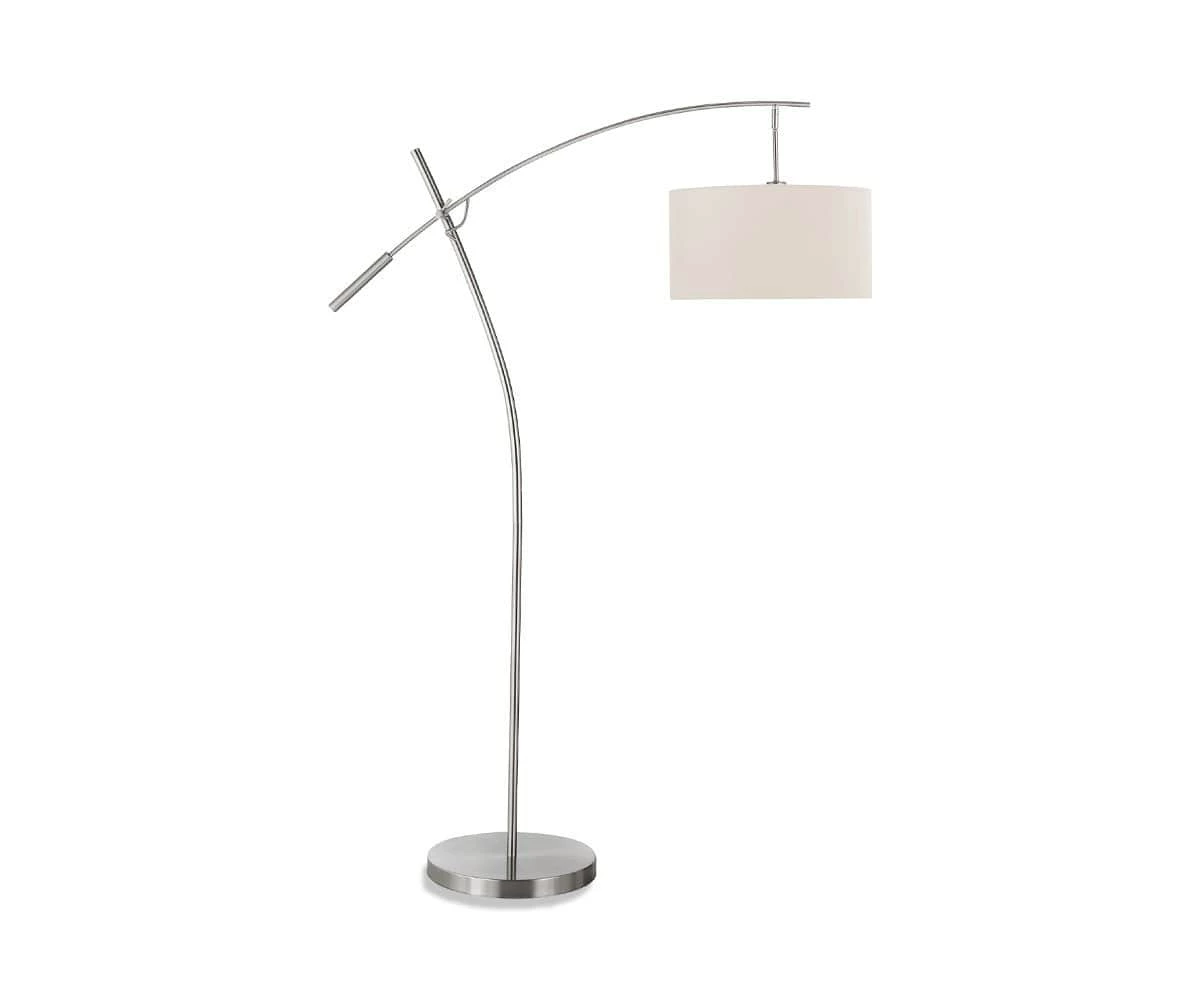 The grand size of the Ian Floor Lamp makes for a wealth of welcome light in your space. A white fabric shade lends itself to soft, white lighting, while a metal base acts as a sturdy support. This tall lamp is finished in brushed nickel, and features adjustable pivoting capabilities which enables it to shine more brightly on your intended surfaces. The arched, modern design paired with a classic cylindrical shade allows for this lamp to seamlessly fit into any number of decor styles, and adding this piece as an element within your layered lighting scheme ensures that you will be able to enjoy a room full of illuminated warmth and comfort.