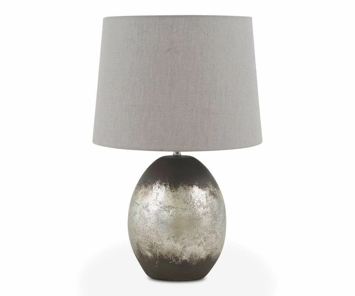 The Pernilla Lamp features a round, solid base that is brought to life through an artistically-applied coat of silver leaf. This finish gives this terracotta lamp an attractive patina that reflects the light back, leaving you with a lamp that brings both light and modern style to your space.